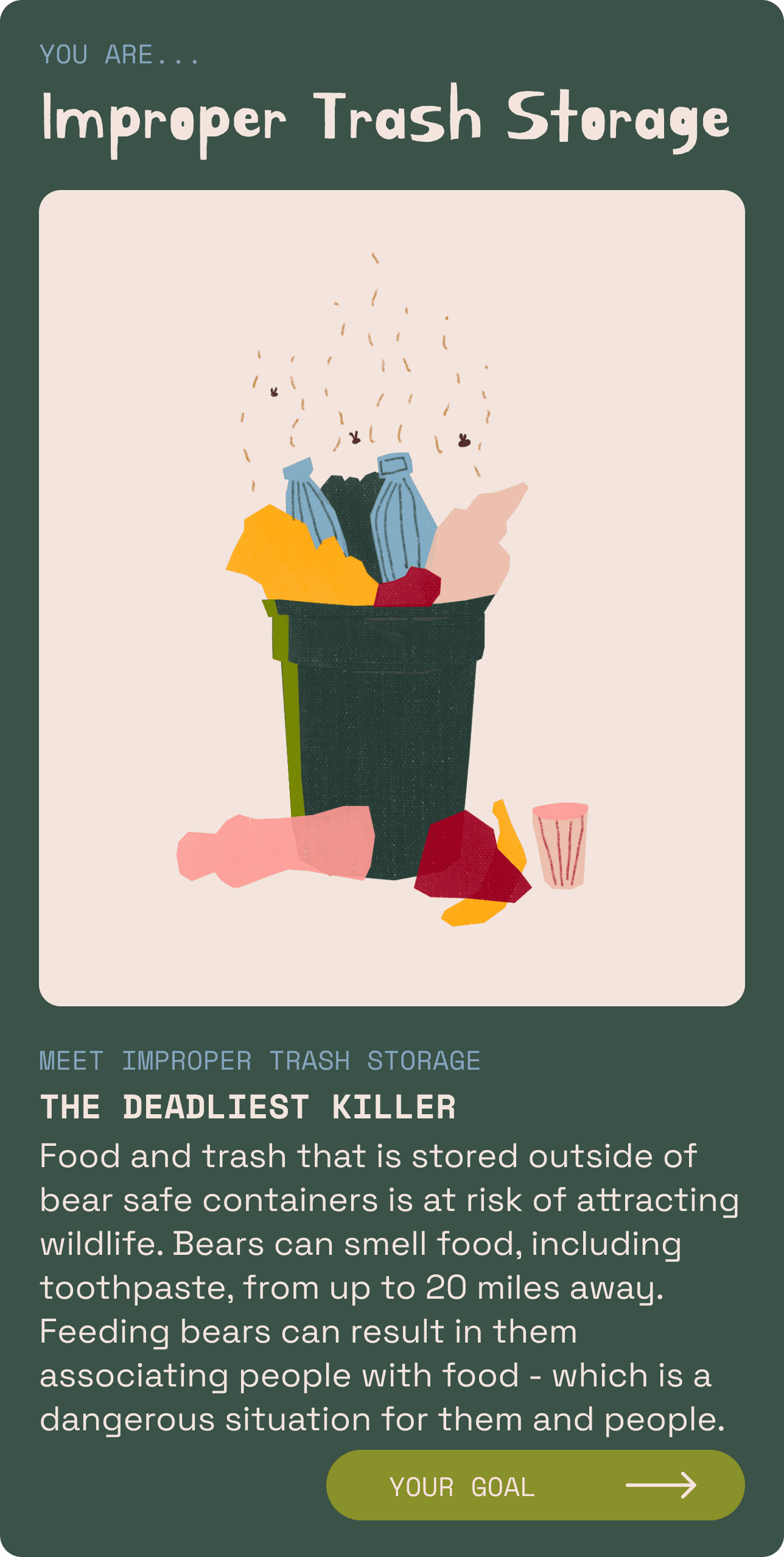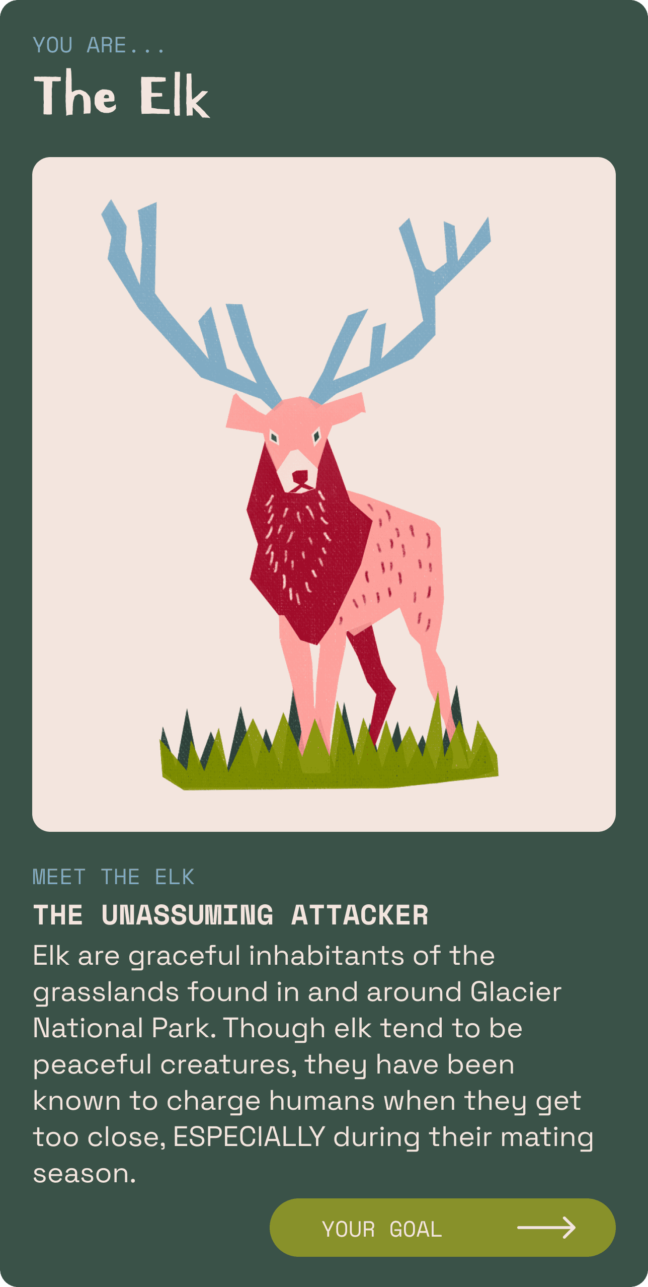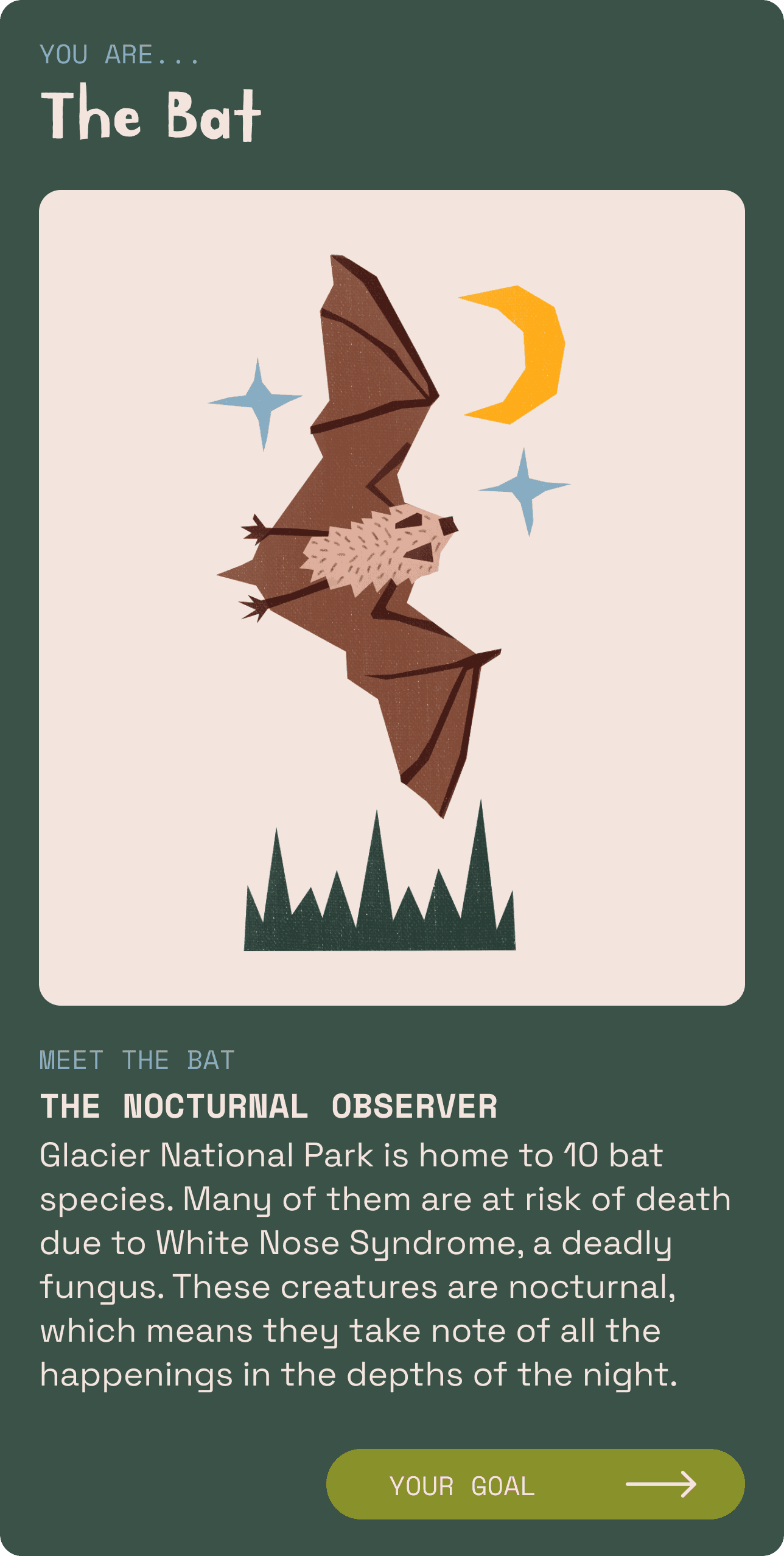One of National Parks After Dark’s goals is to ensure the safety of park visitors and preserve the National Parks. The app should have educational elements that stay with the audience, even when they aren’t playing.