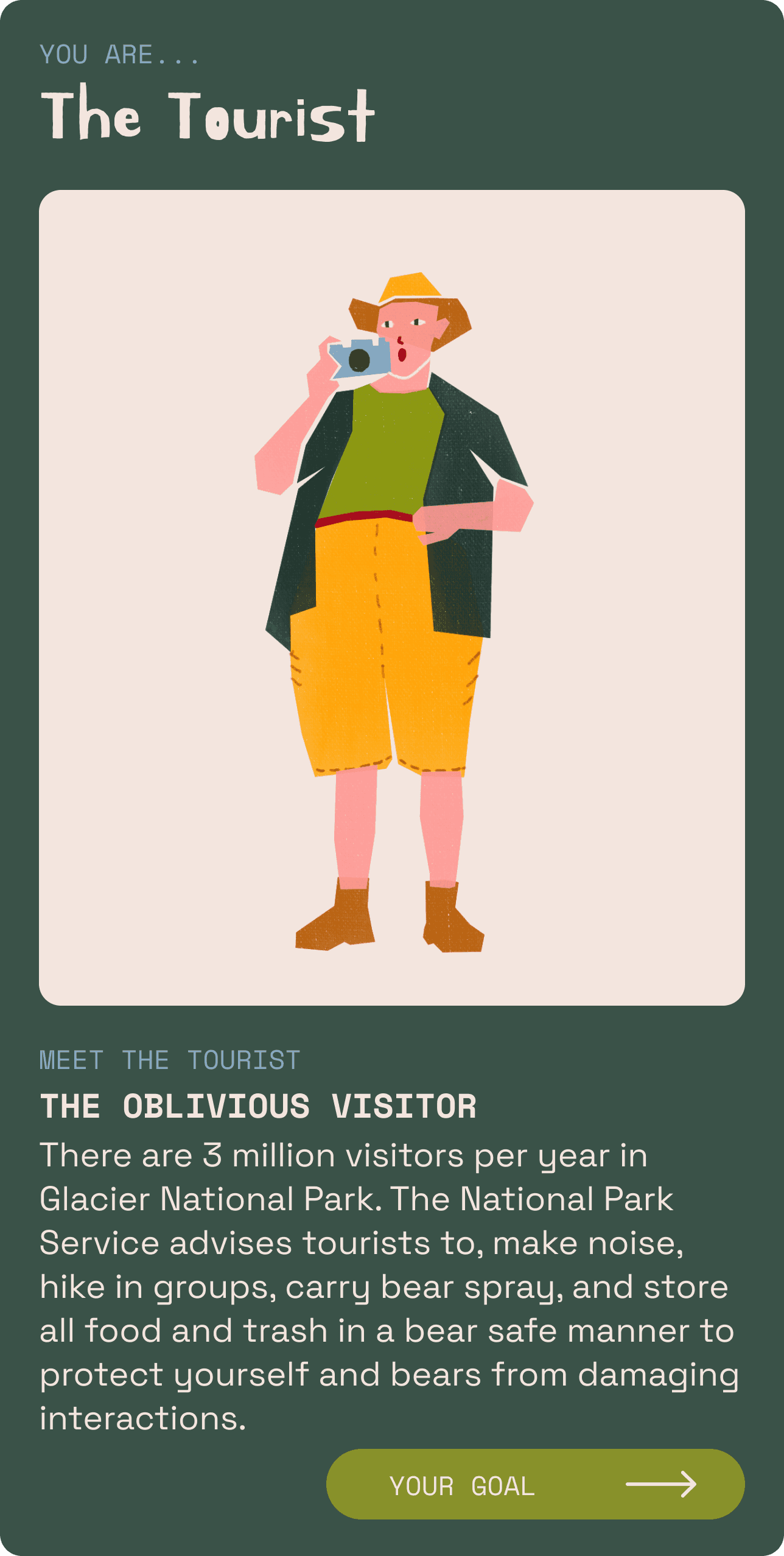 So I made a character assignment card that would provide quick facts about each character with pertinent safety tips about navigating national parks.