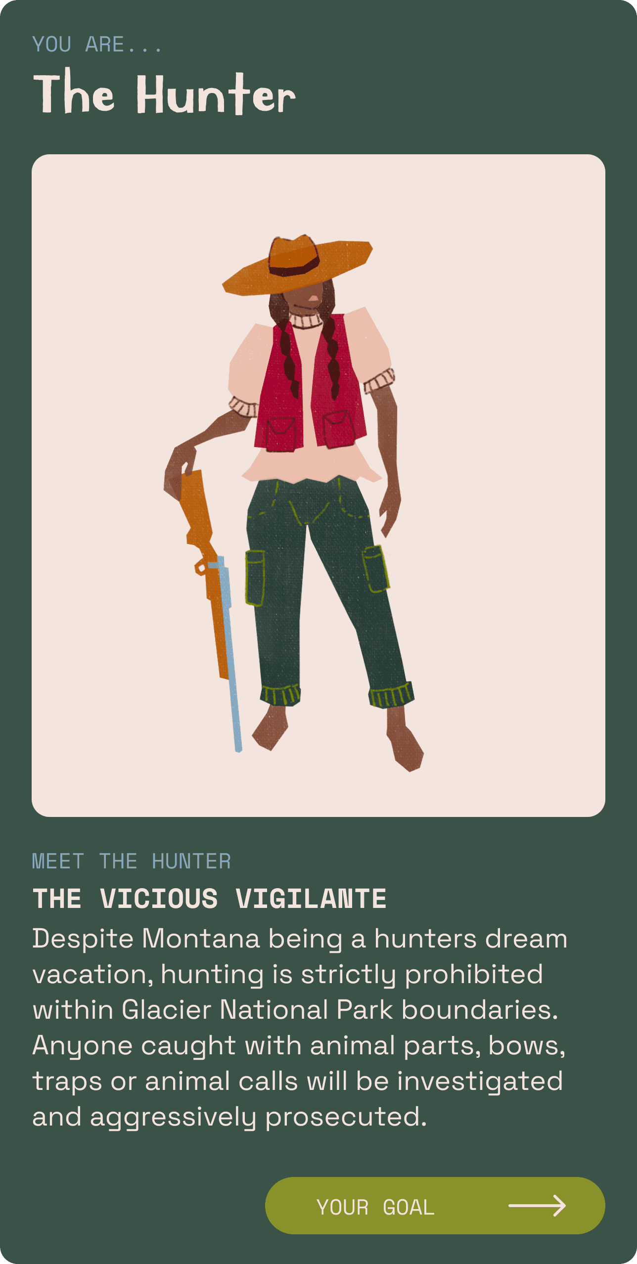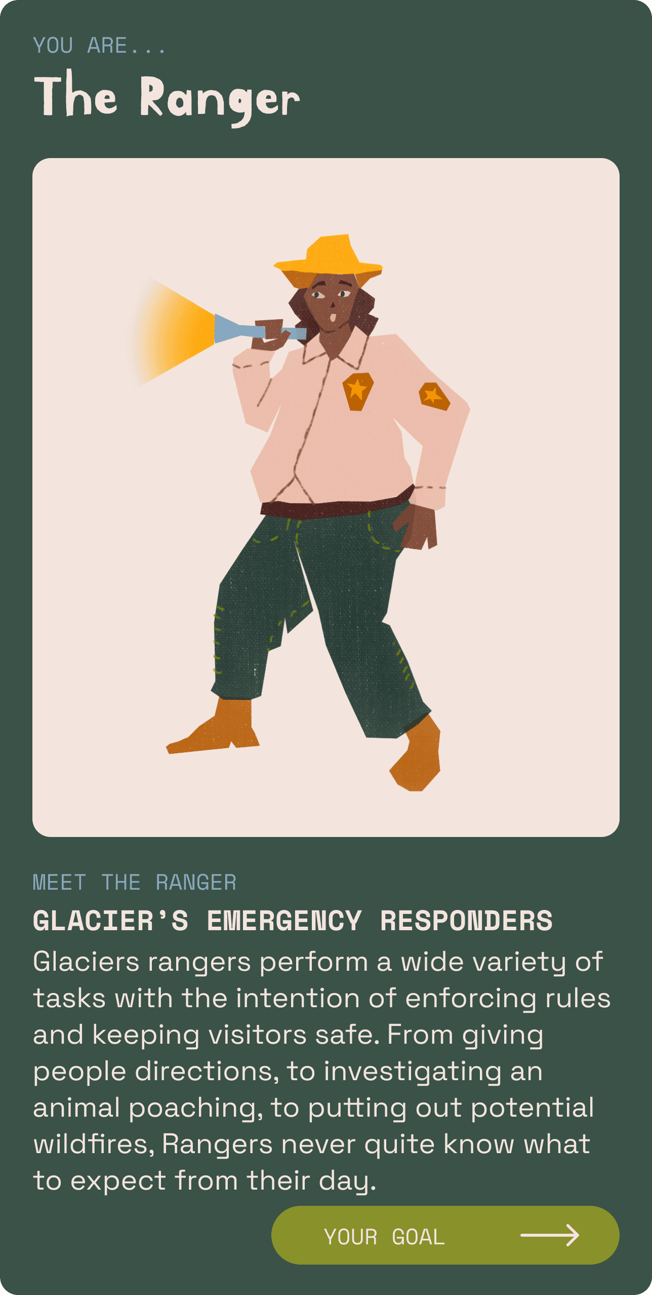 National Parks After Dark is an educational story telling podcast. Each episode immerses listeners into the lives of each character. Users needed a game that would reflect that type of engaging storytelling.