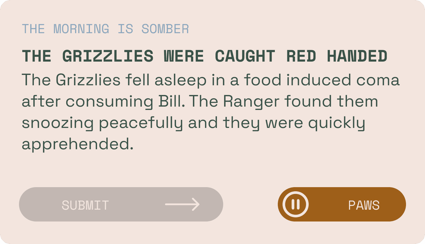 Players can then use this story to discuss each other's role and motives to deduce who is the Grizzly.